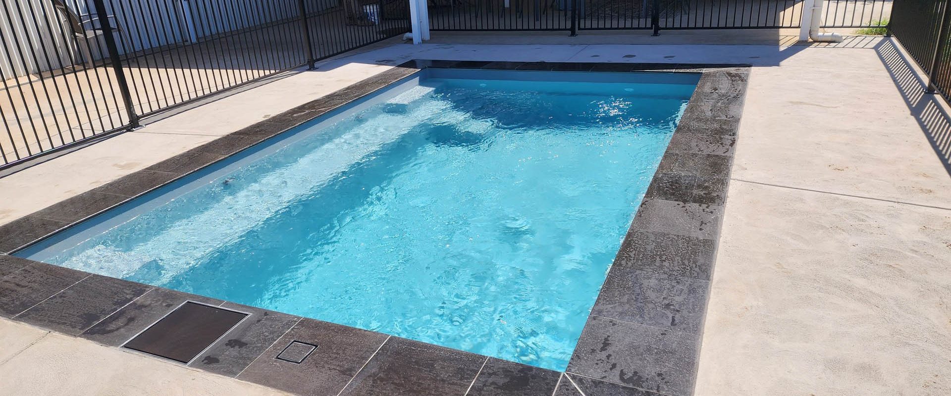 Dual entry points and cascading steps create a gentle transition into the water, as if stepping into a hidden dimension of serenity. The full-length bench seat invites you to unwind, where you will be enveloped in tranquility. Additionally, this plunge pool fosters an unobstructed swimming corridor, providing ample room for a seamless and uninterrupted swimming experience.